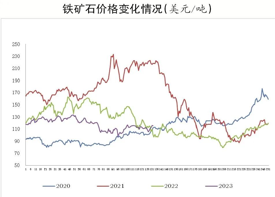 三是原燃料價格大幅下跌后再次回升。當前,鐵礦石價格仍處于偏高水平(如圖),高礦價繼續刺激著海外礦山積極發運。考慮到海外制造業下行趨勢明顯,預計海外鋼產量難有較大起色,流向我國的鐵礦石比重仍將保持較高水平,鋼鐵原燃料價格在經歷前期的大幅下跌后已經開始反彈。